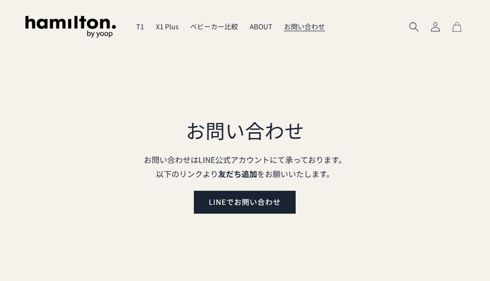 緊急おすすめ候補入りは一旦スルーひっそりと昨年2025年12月21日に国内販売を開始していたオランダ発祥で中国製造のベビーカーブランド。情報は少ないけれど、どうやら自社サイト完結型で販売していく方針の様子。このモデルは私が見てきた中で数々の失敗事例を見るものの、日本法人の株式会社HamiltonBabyの手腕に注目したい。しかし、サイトのお問い合わせページ(こちら)を見る限りではちょっと苦しい導線が敷かれているなと感じた。お問い合わせするにはLINEでお友達登録しなければならないらしい。それは気持ち悪いでしょうが、、一説には製造を担当する側のOEMメーカーは中国・山東省のJiningXingtaiStrollerCoLtdとの噂もあるが事実を調査中。肝心なの